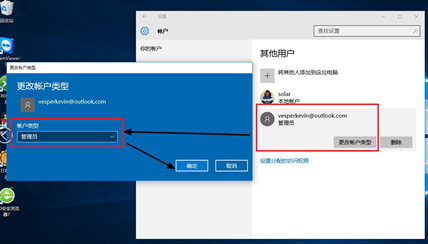 5. 点击刚才输入的微软账户用户名,选择“更改类型”,并将其修改为:管理员。
