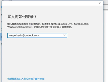 4. 在弹出的窗口中输入之前注册好的微软账户名,输入正确后点击下一步。