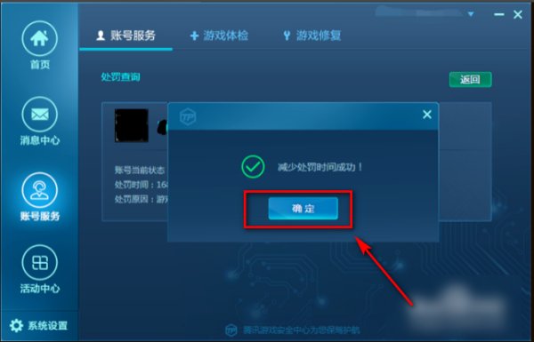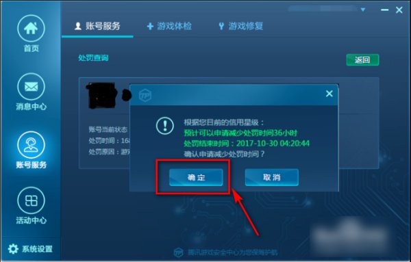 3、然后可以点击下图红框中的确定按钮,然后减少处罚的封号时间。