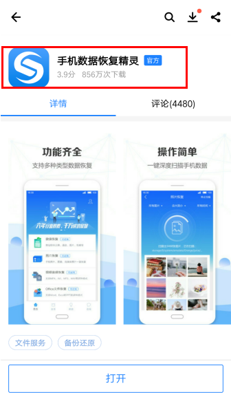如果你是安卓手机用户,那么是无法使用上面的方法恢复微信聊天记录的,不过我们可以打开手机浏览器或者手机应用宝查找【手机数据恢复精灵】,下载到手机中,这款应用可以更好的帮助我们将删除的微信聊天记录找回。