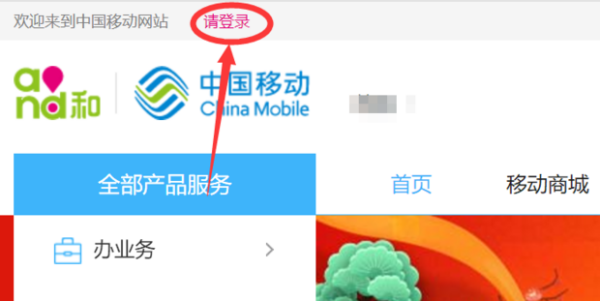 1.首先,打开中国移动网上营业厅,单击上方的“请登录”。