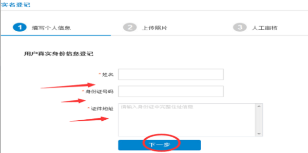 6.最后,在实名注册页面上,如实填写个人信息,上传照片,提交后等待人工审核即可。