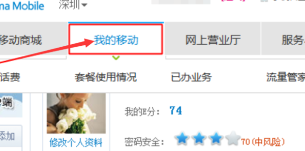 4.成功登录后,单击“我的移动”。
