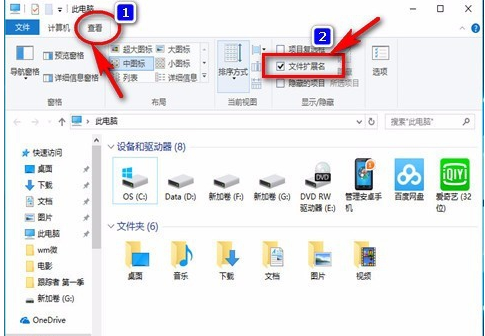 3、打开我的电脑,点击查看,然后将“文件扩展名”勾选再操作就可以了;