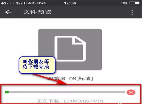 5、发送完成,通知朋友点击一下发送给他的文件,等待下载完成即可。