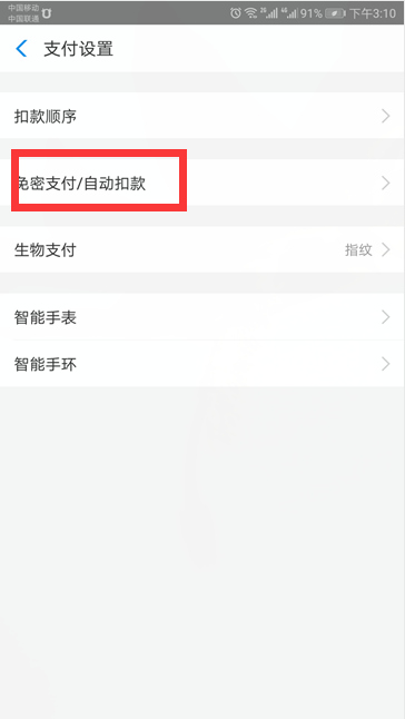 7、在支付设置中,点击“免密支付/自动扣款”。