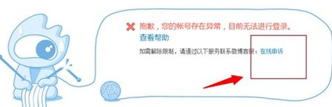 二:如果确认了账号或者密码都是正确的,还是登陆异常,那么这时我们要在出现提示异常的窗口里找到“在线申诉”这个选项,并点击打开它。