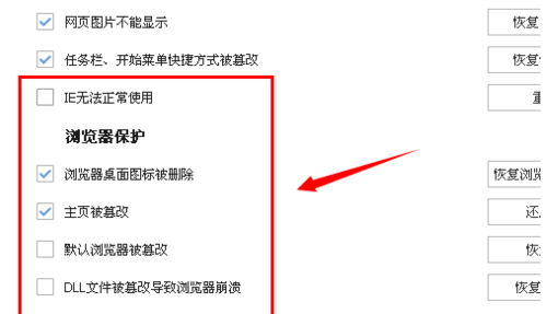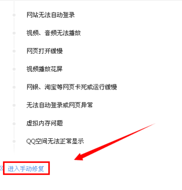 6、在”进入手动修复“还有其它的一些选项,如果浏览器还有问题,可以勾选后进行修复。