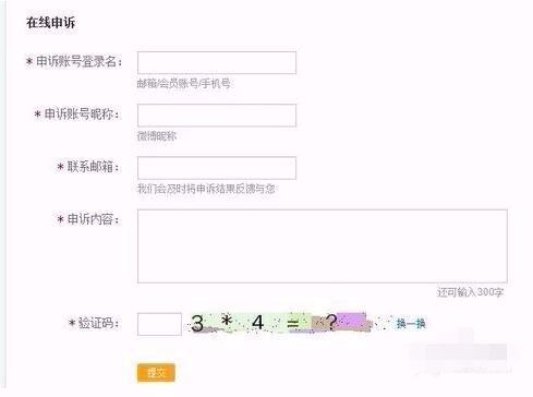 进入“在线申诉”页面,按要求填写登录名,昵称,联系邮箱,申诉内容等,然后提交;