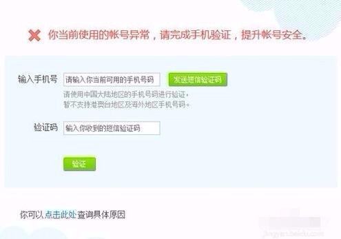 2. 系统检测到您的帐号有被盗风险,为了保障帐号安全,请您完成验证后进行“帐号安全设置”以提升帐号安全等级。