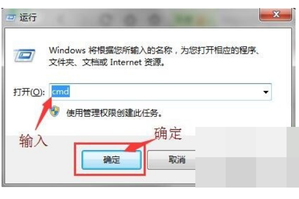 1、按win+R组合键,弹出【运行】对话框,在【打开】文本框中输入“cmd”命令,单击【确定】按钮。