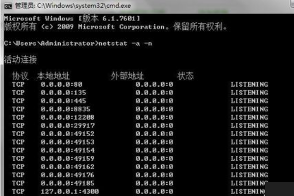 3、按Enter键,稍等片刻,即可在下方列出以数字形式显示TCP和UDP连接的端口号及端口状态。