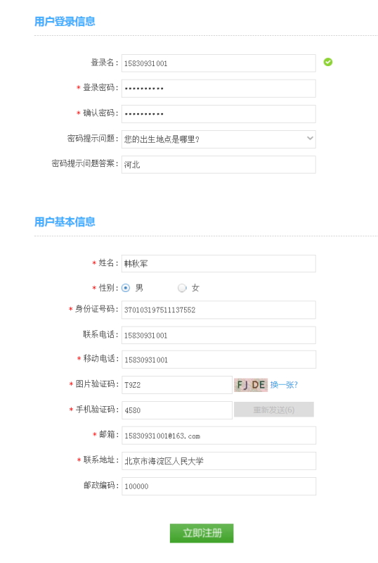 5.填写过程中,需要验证手机验证码。输入手机号码之后,点击“发送验证码”,把手机收到的短信中的验证码,填写今验证码框中即可。点击“发送验证码”后,会出现“发送成功”的提示;