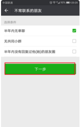 第四步我们勾选条件,选择半年内无单聊,点击下一步,如下图所示: