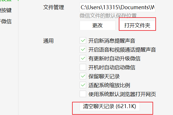 5、可以点击打开文件夹,查看是否有需要保留的文件,最后点击点击清空聊天记录可以进一步清理空间。
