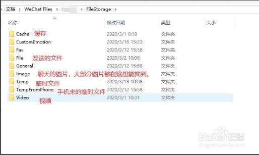 FileStorage : 是微信的文件存储,包含了附件、缓存(图片)、聊天图片、视频、文件、收藏等,除了语音和消息外,其他过程产生的文件基本都在这里面.