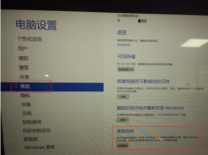 进入bios界面,进入控制面板:选择常规-高级启动 点立即重启。