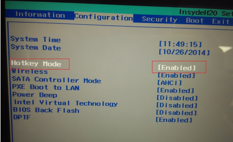 按键盘“↓”选择 hotkey mode(译为:热键模式),按回车出现下图。
