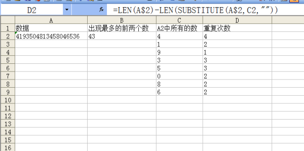 EXCEL 某一个单元格最多出现的两个字符怎么用函数表示,求高手解答