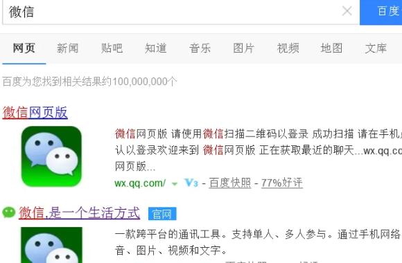 1、在浏览器首页搜索微信。