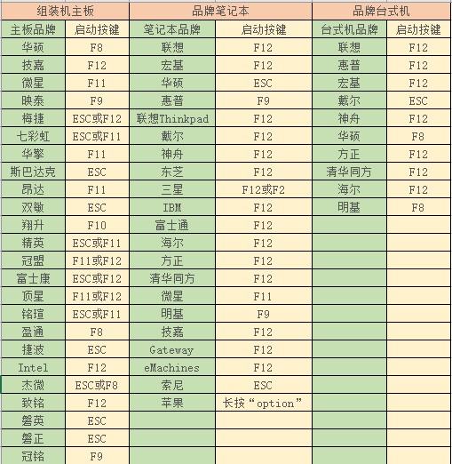 不同电脑的启动菜单快捷键参考下图: