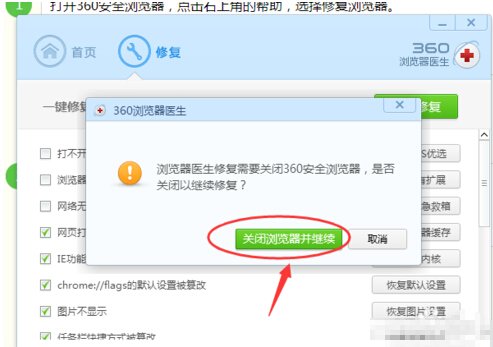 3、修复前需要关闭浏览器,请保存好自己的工作。