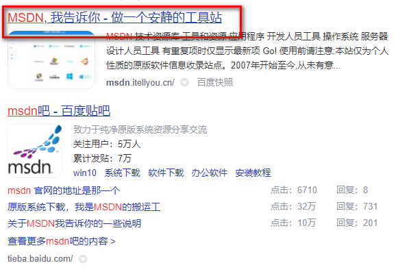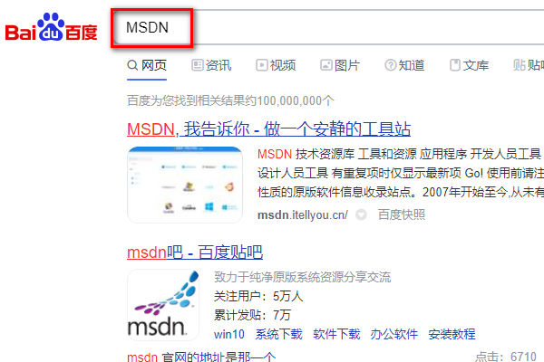 在百度搜索中,输入“MSDN”进行搜索。