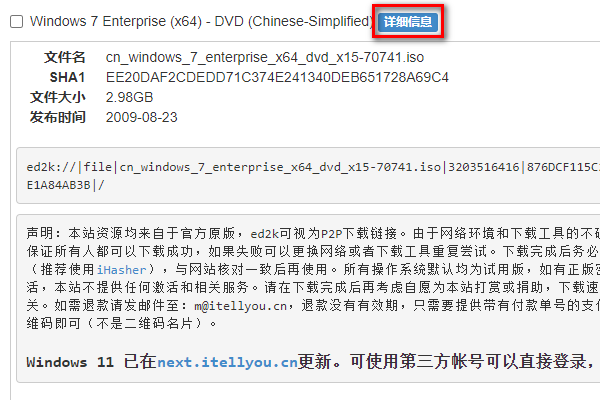 在右侧选择自己想要的Windows7版本,点击“详细信息”。
