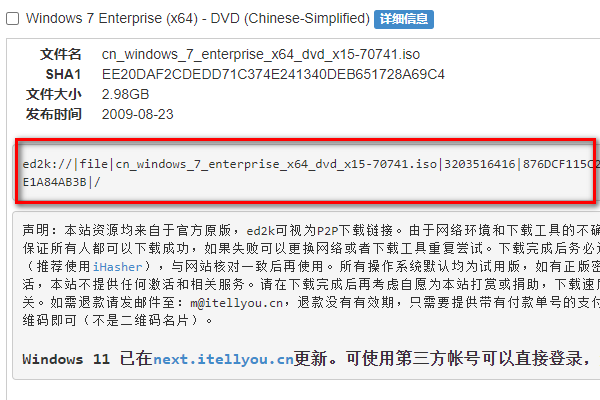复制文件的ED2K链接。