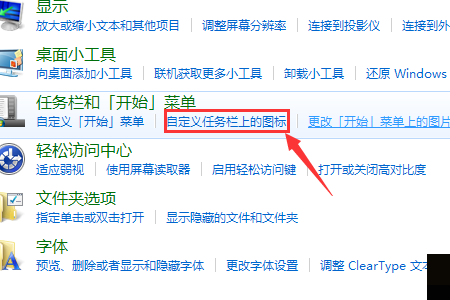 3、然后接下来点击“自定义任务栏上的图标”的选项进入。