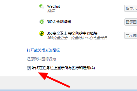 4、接下来下滑页面,然后勾选“始终在任务栏上显示所有图标和通知”,回车确定操作。