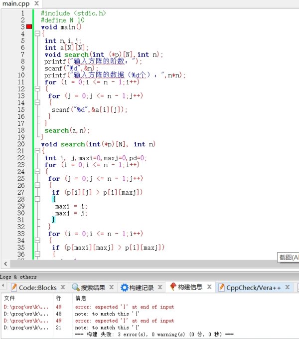 printf("鞍点的行为:%d 列为:%d", maxi, maxj);