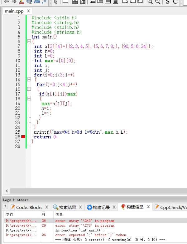 \x09\x09\x09\x09h=i; //将最大值a[i][j]中的 i (行)赋值给 h;