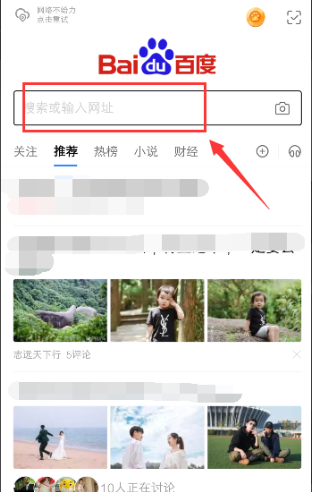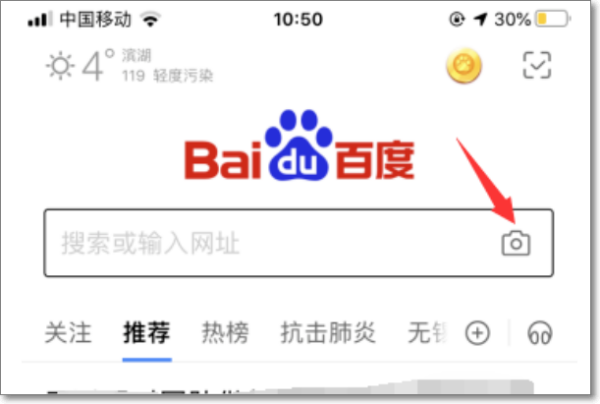 2、然后进入手机百度搜索引擎, 选择照相机进入照片搜索框。如图所示: