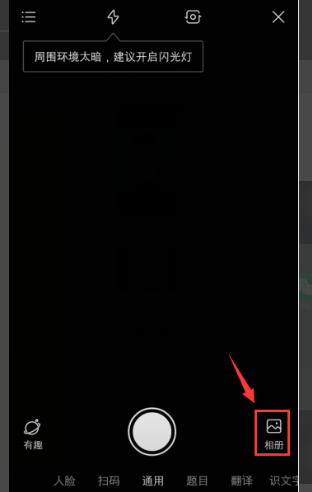 4、进入拍摄页面,点击右下角的【相册】,如下图所示: