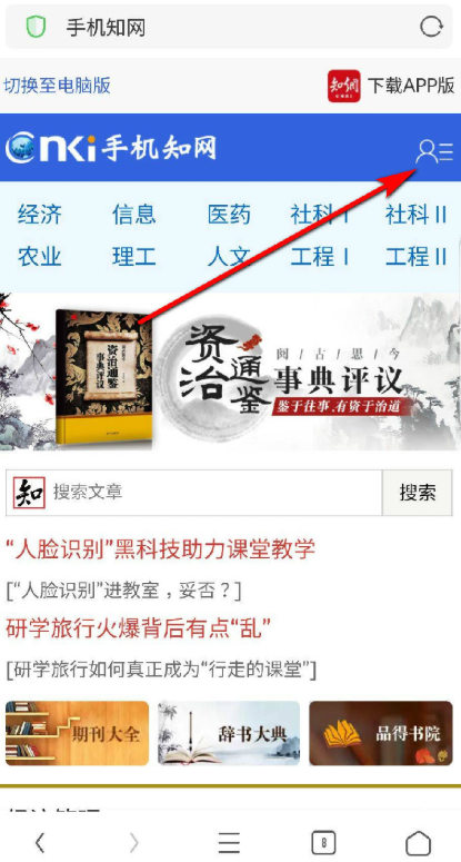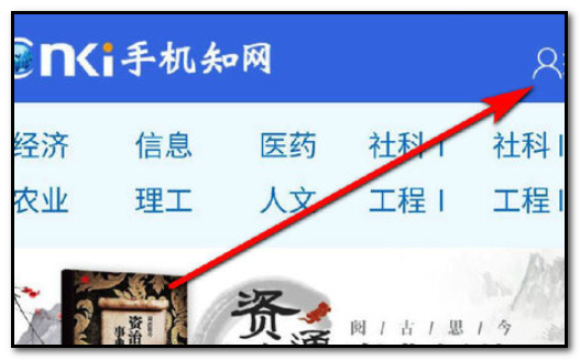 3、点击进入中国知网官方网站之后,点击右上方小人标识。