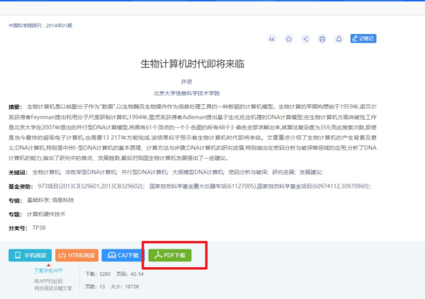 6、然后在详情界面中选择“PDF下载”即可下载免费查阅,如图所示。