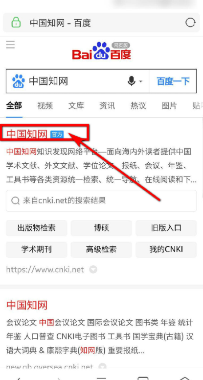 1、手机打开浏览器,百度搜索中国知网,然后看到有官方标志的就是免费入口了。
