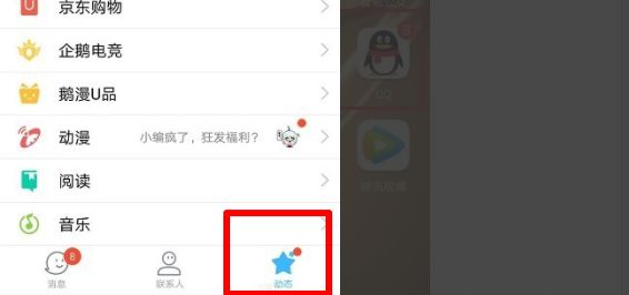 2、然后我们在弹出来的窗口中点击打开右下角的“动态”。
