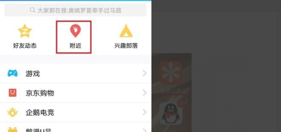 3、然后我们在动态页面的窗口中点击打开“附近”就可以恢复了。