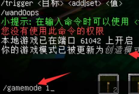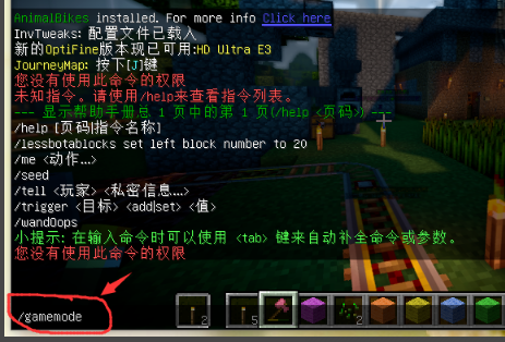 四、如果此时尝试输入gamemode切换游戏模式,会显示没有使用此命令的权限。