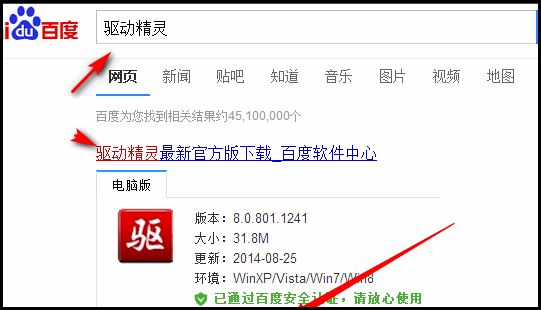 1、百度搜索驱动精灵或驱动人生下载后安装。如下图所示。