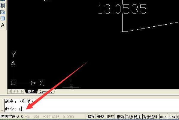 1、打开电脑中的一个CAD文档,然后在下面的命令栏中输入“B”,然后按键盘上的回车键;