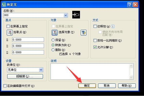 4、然后,完成上述步骤后,在块定义页面上单击“确定”按钮,如下图所示。