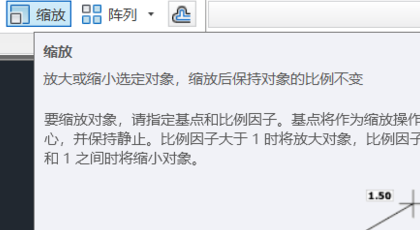 5、随后,缩放时,需要首先选择图形,然后选择缩放的基点,最后输入缩放比例或选择参考。操作方法可以查看下面的任务提示栏,如下图所示,然后进入下一步。