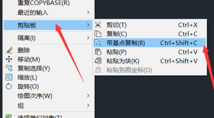2、其次,点击剪贴板-带基点复制,如下图所示,然后进入下一步。