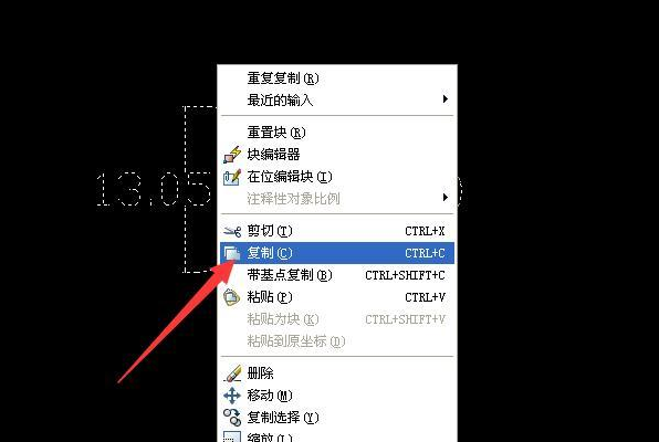 5、随后,完成上述步骤后,使用鼠标选择刚刚定义的块,右键单击并选择“复制”选项,如下图所示。