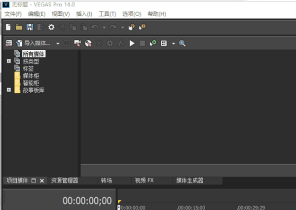 5、最后打开vegas软件,界面就变成汉化版的了: