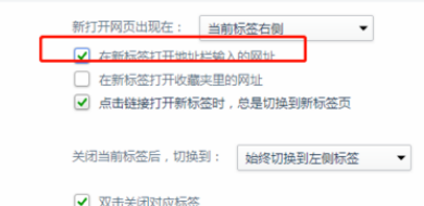 6、在”新建标签“中在新标签打开地址栏输入的网址 也要勾选中 才能在输入网址后可以单独新打开一个页面