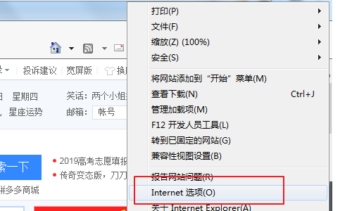 3、在出现的窗口中找到internet选项,然后点击internet选项。